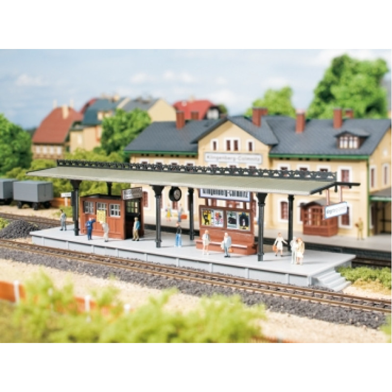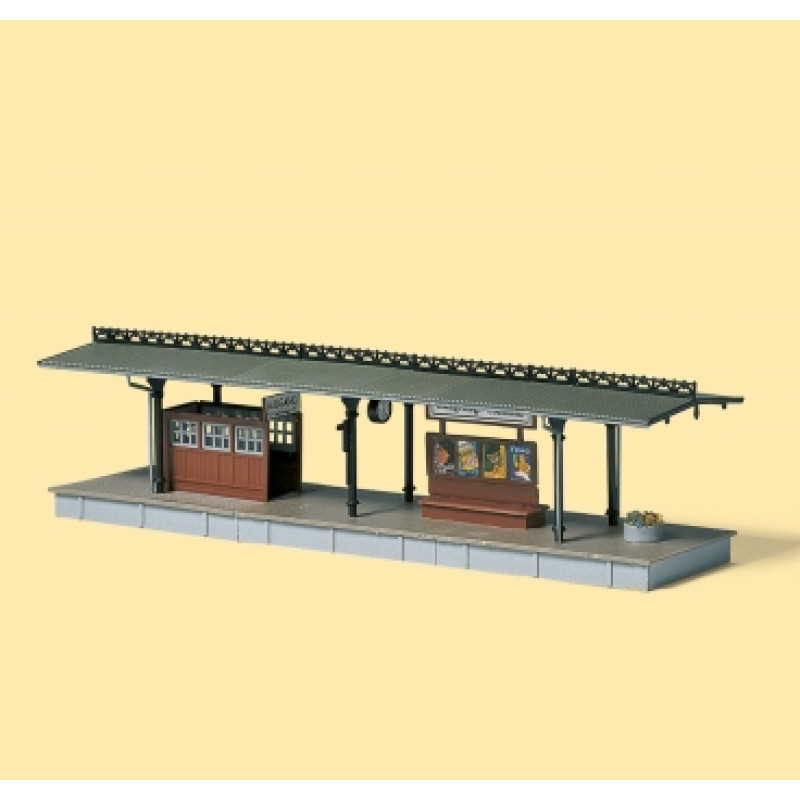 Pochází z přelomu století. Litinové sloupy, přístup podchodem, lavičky, billboardy a květinové mísy. Při použití kolejí s podložím je nutno upravit výšku základny. Osová vzdálenost kolejí: 91mm. Rozměry: 236 x 55 x 60 mm.