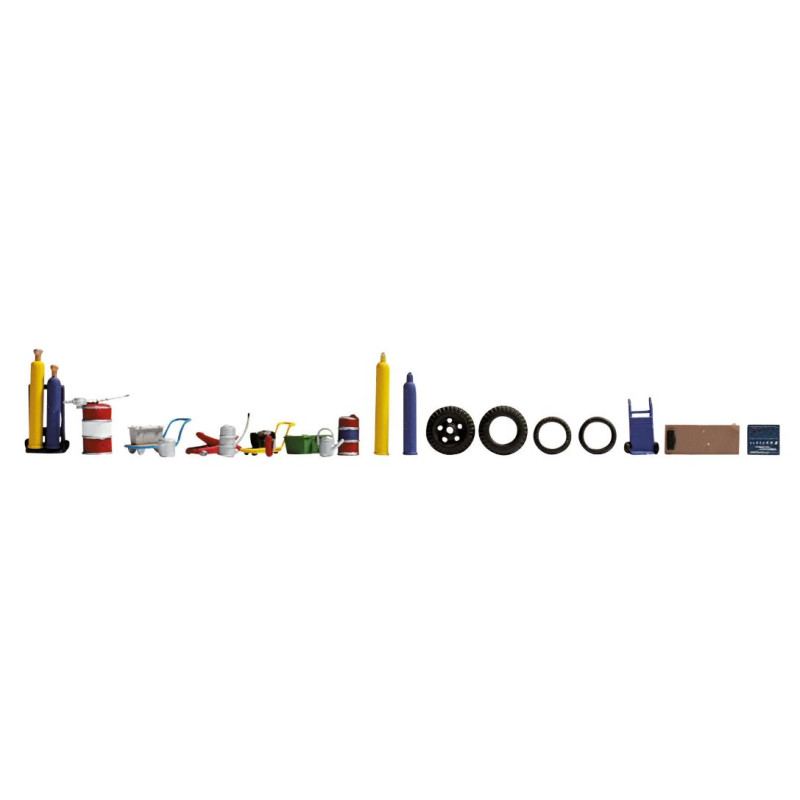 Obsah: Plynové láhve, vozík na plynové láhve, bubnová pumpa, ruční vozíky, zvedák, vědro, hasicí přístroj, kanystr na vodu, skříňka na nářadí, boxy na nářadí, olejové sudy, kyslíkové láhve, kolo, pneumatika, ruční vozík, rolovací plachta, autobaterie.