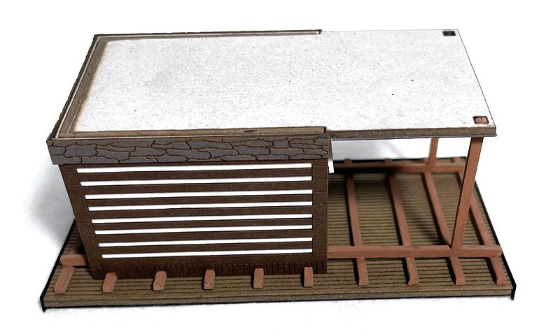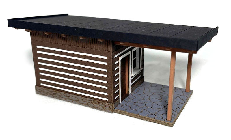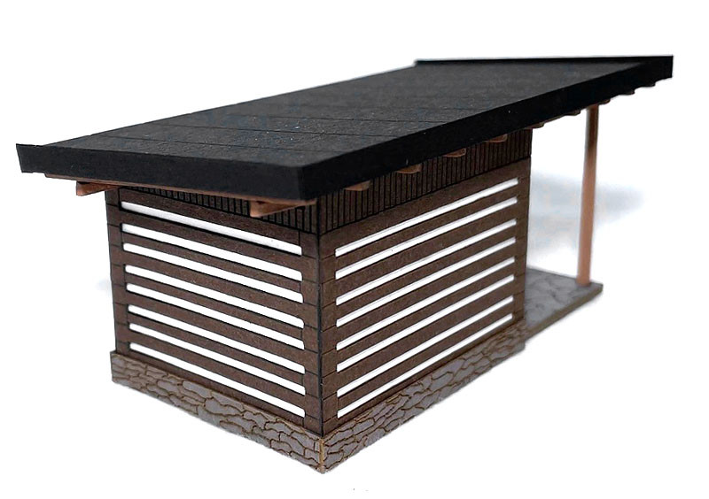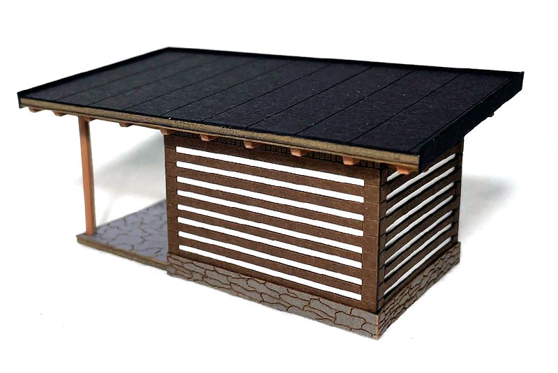 Model roubené kůlny ve velikosti H0 je vyroben z kartonu a barevného papíru. Velmi se hodí k produktu roubenky v Podkrkonoší. Model je vyroben technologií laser-cut a obsahuje 39 dílů stavebnice. Plánek je součástí balení.