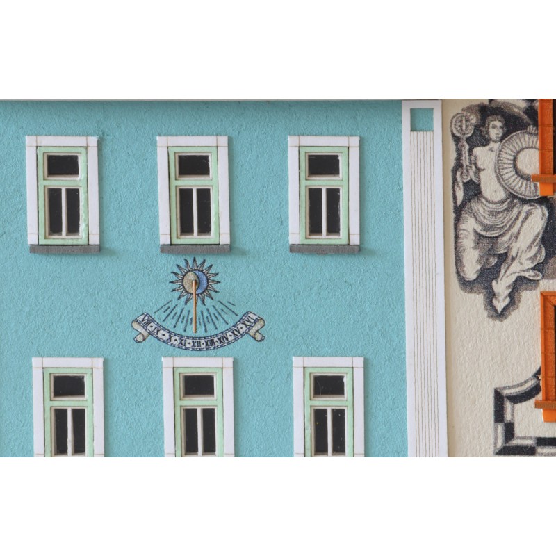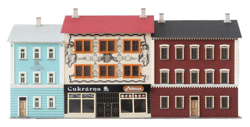 Reliéfní domy se používají jako kulisa ke stěně kolejiště. Staby je možno rozmístit v libovolném pořadí. Set obsahuje 3 stavby.