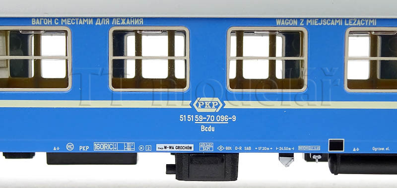 Lehátkový vůz 2. třídy Bcdu, typ Y/B 70, PKP, V. epocha, TT, Tillig 16404