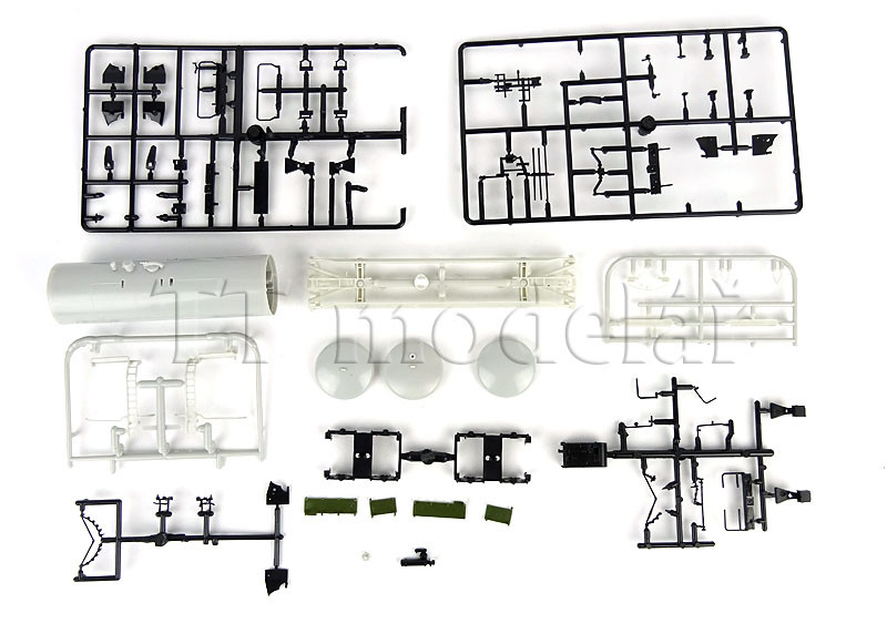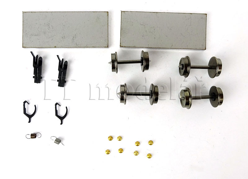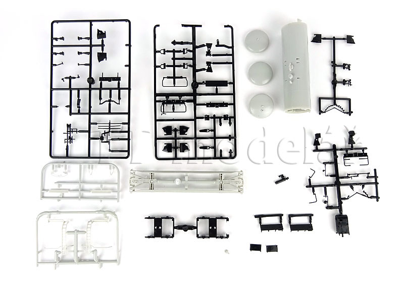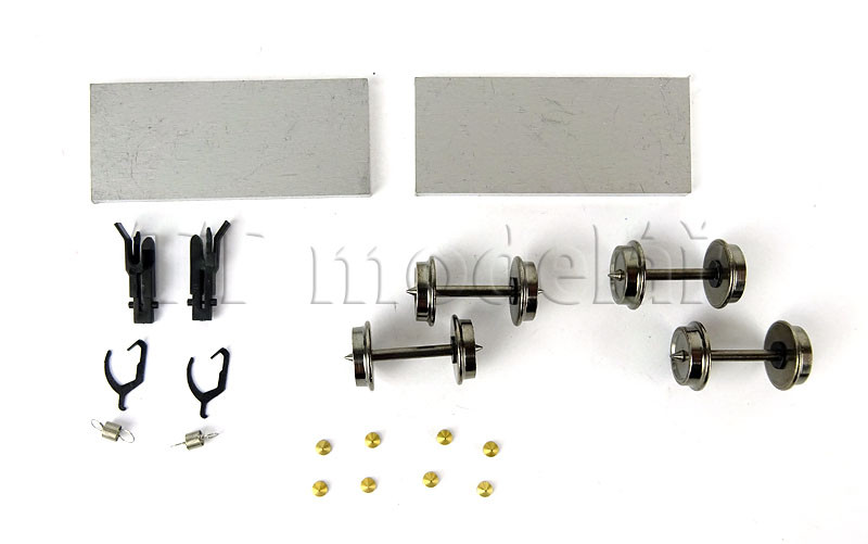 Stavebnice obsahuje obtisky, soukolí, spřáhla a ložiska PEHO. Výlisky jsou lisovány ve světle šedé barvě, podvozky a doplňky v černé barvě.
