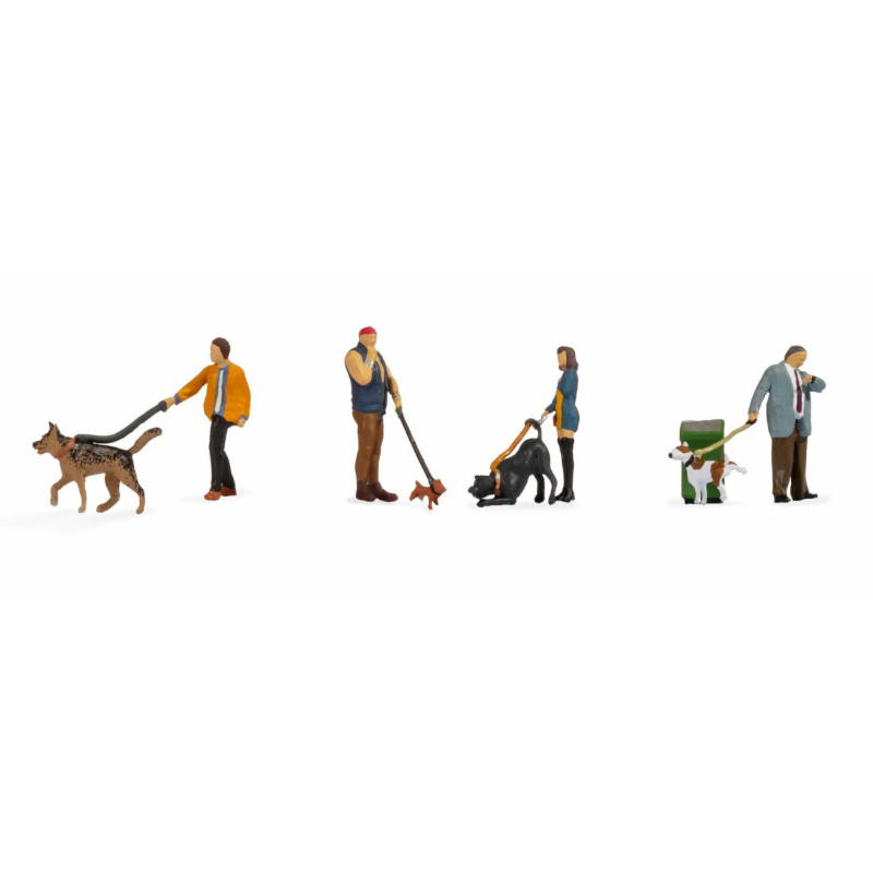 4 figurky lidí a 4 psi, 1 odpadkvý koš.