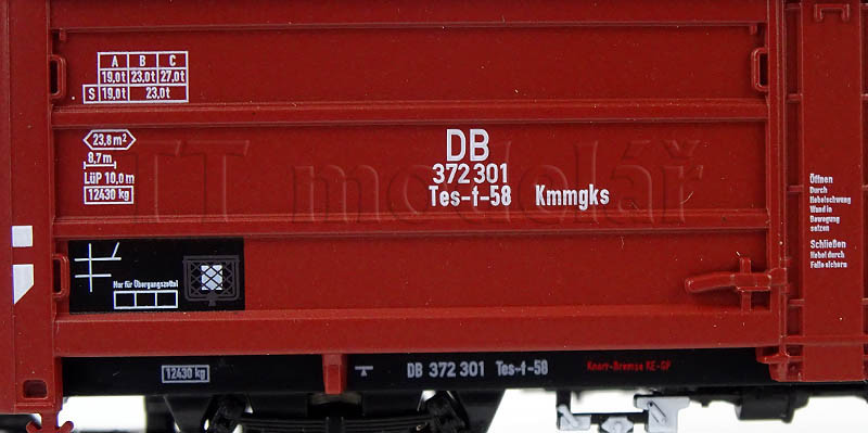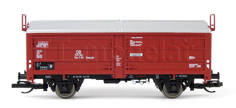 Vůz s posuvnou střechou a stěnami Tes-t 58, DB, III. epocha, TT, Tillig 17653