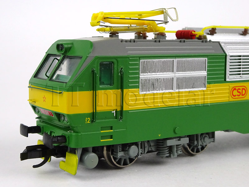 Model v nátěru ČSD, rok cca 1990. Je vybaven motorem se setrvačníkem, přepínatelným osvětlením dle směru jízdy, osvětlením stanoviště strojvedoucího. Lokomotiva je vybavena rozhraním Plux16. K modelu jsou přibaleny doplňky.