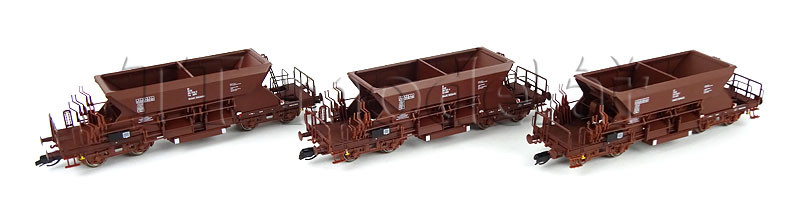 Set 3 kusů samovýsypných vozů Fac125, s vysokou korbou, DR, IV. epocha, TT, Arnold HN9747
