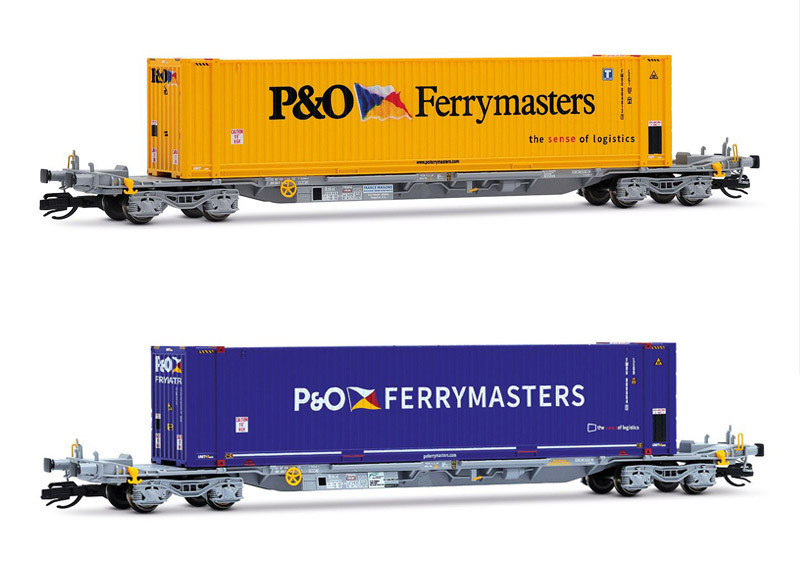 Set dvou kontejnerových vozů s kontejnery „P & O Ferrymasters", VI. epocha, TT, Arnold HN9760