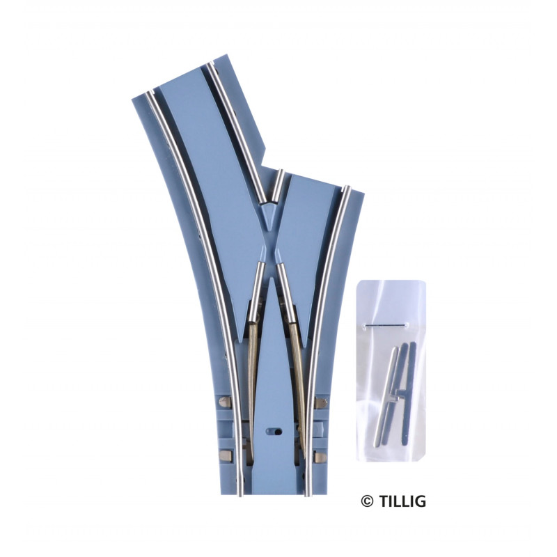 Oboustranná výhybka levá s asfaltem/betonem, R 204/250 mm, tramvajové kolejivo Luna, TT/H0m, Tillig 87144