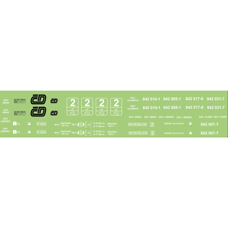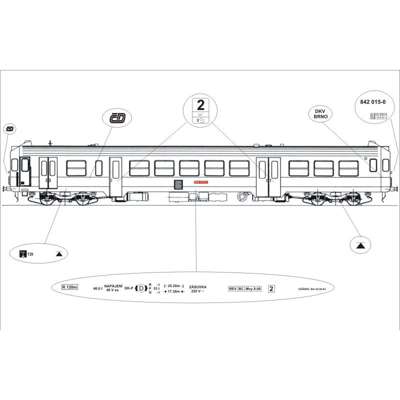 Obtisky na motorový vůz 842, unifik ČD, 90. léta, V. epocha, TT, Jacek 12OM9002