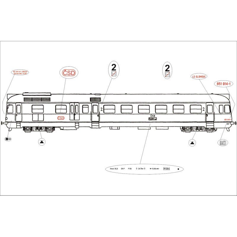 Obtisky na motorový vůz 850/851, unifik vz. 1988, ČSD, IV. epocha, TT, Jacek 12OM8001