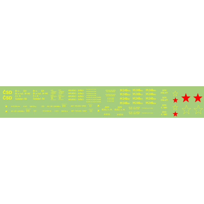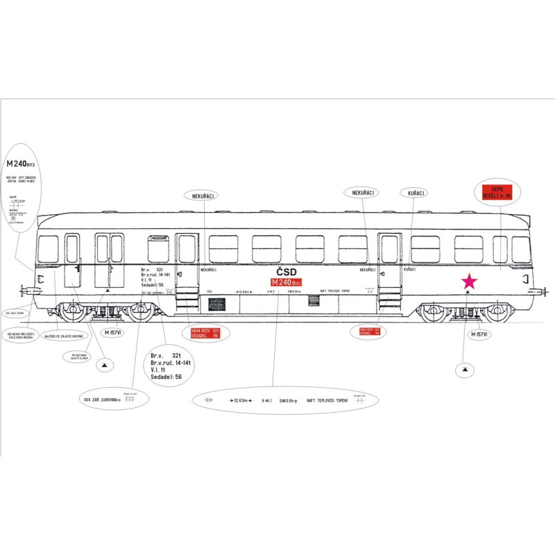 Obtisky na motorový vůz M 240.0, ČSD, 60. léta, IV. epocha, TT, Jacek 12OM6001 Obtisky na motorový vůz M 240.0, ČSD, 60. léta, IV. epocha, TT, Jacek 12OM6001