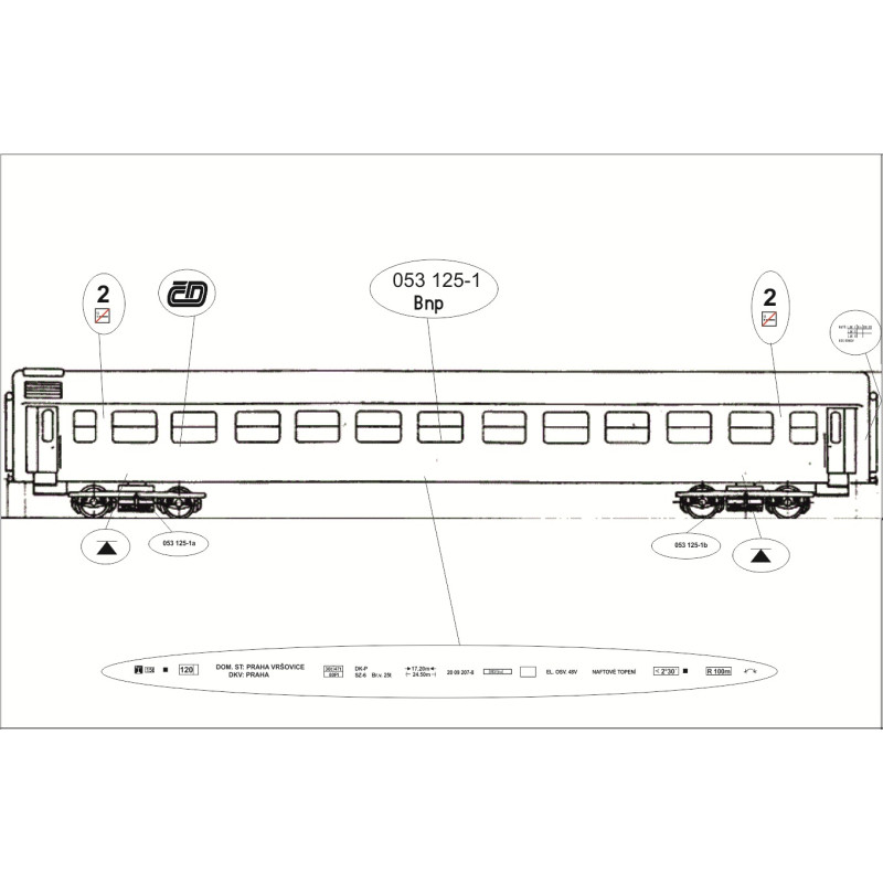 Obtisky na přípojný vůz 042, 053, 054, Btfn, Btn, Bn, ČD, V. epocha, TT, Jacek 12OV0005