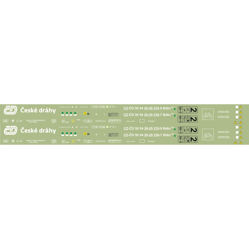 Obtisky na přípojný vůz 054 Bdtn, retro nátěr, ČD, VI. epocha, TT, Jacek 12OV1004 Obtisky na přípojný vůz 054 Bdtn, retro nátěr, ČD, VI. epocha, TT, Jacek 12OV1004
