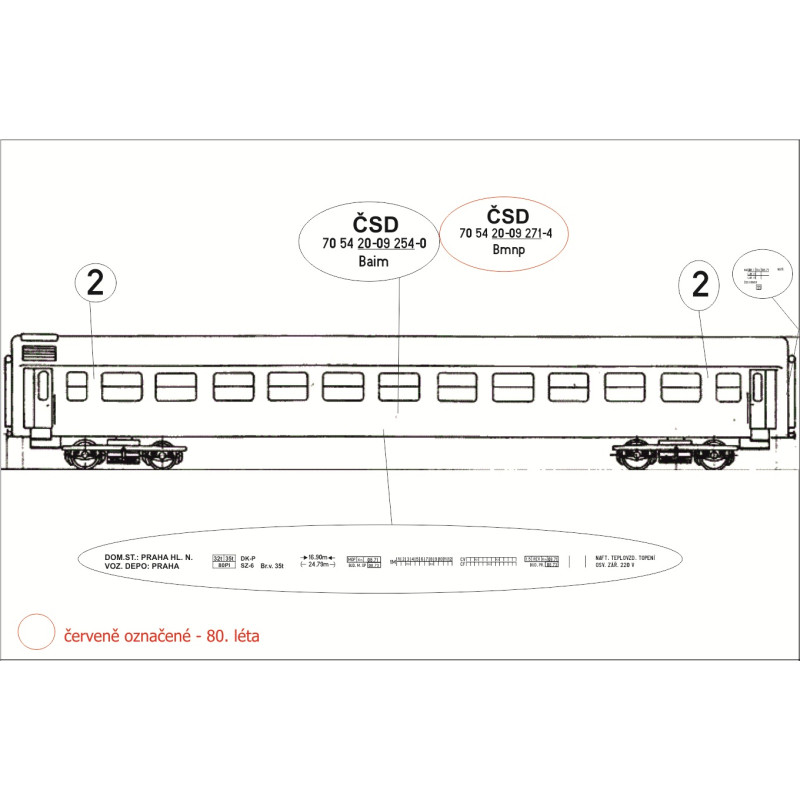Obtisky na osobní vůz Bdmtee, ČD, V. epocha, TT, Jacek 12OO0002