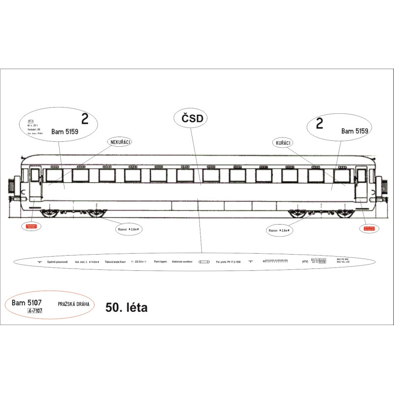 Obtisky na osobní vůz Bdmtee, ČD, V. epocha, TT, Jacek 12OO0002
