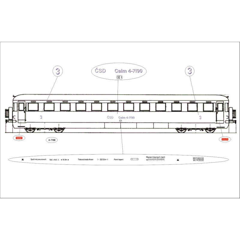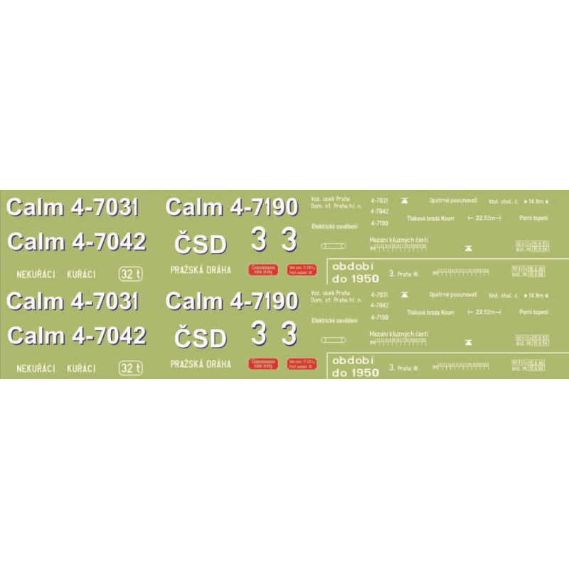 Obtisky na přípojný vůz Calm, rok 1949, ČSD, III. epocha, TT, Jacek 12OV5001