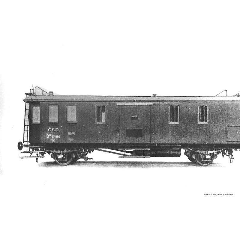 Vůz původně rakouského typu vyráběný před rokem 1918 je koncepčně shodný s tehdy vyráběnými vozy osobními a poštovními. Byl to vůz ve smíšené stavbě s rozvorem 7, 5 metrů, ale na rozdíl od nich neměl oplechovanou skříň. Dřevěná kostra skříně byla pouze vybedněna svislými peřejkami. Na jednom čele byly vstupní dveře do oddílu pro vlakvedoucího, na boku posuvné dveře do zavazadlového prostoru. U zadního čela byla schrána pro psy. Skříň měla celkem deset oken, ale u starších vozů bez vyhlídky. Ta byla některým vozům později dosazena, mnoho jich dojezdilo bez ní. Vzhledm k době svého vzniku měly sací brzdu a plynové osvětlení. Topení bylo parní. Ve 20. letech jim jsou tak jako jiným vozům postupně dosazovány brzdy tlakové a osvětlení elektrické. Jejich provoz pokračuje dál i v 50. a 60. letech bez větších změn. Po roce 1957 je jim změněno číslo, řada zústává stejná. Postupně jsou jim odebírány čelní střešní lávky, žebříky a toulce koncových svítilen a rušeny psince. Při dodávkách nových služebních vozů jsou z provozu postupně stahovány a jen v malém počtu se udržely do poloviny 70. let min. století. Modelově je vůz zajímavý svislým bedněním skříně, které ho odlišuje od ostatních vozů. Jeho znázornění vyžaduje přesnou práci, ale námaha se vyplatí. Na modelářském trhu jsou ovšem materiály, které již příslušný povrch mají. Jejich použití je možné za cenu drobných ústupků od modelové přesnosti. Také neobvyklý rozvor 7, 5 m je stále ještě vhodný pro malá domácí kolejiště.