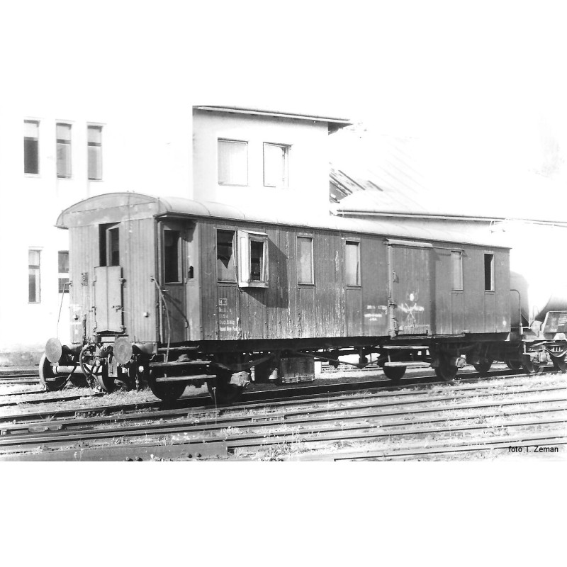 Vůz původně rakouského typu vyráběný v roce 1936 vychází koncepčně ze starších vozů tohoto typu s rozvorem 7, 5 m. Provedení je stejné, tedy smíšená stavba s neoplechovanou skříní se svislým bedněním. Je mu ale zvětšen rozvor na 8 metrů a velikostně tak odpovídá tehdy vyráběným vozům osobním a poštovním. Na jednom čele je vstup do vozu, na bocích posuvné dveře do zavazadlového prostoru a na konci psince. Skříň má dvanáct oken s vyhlídkou. Od velmi podobného typu z roku 1935 se liší polohou dveří a některých oken v bočnici. Mají také např. odpružené závěsy pružnic a rychlost je jim zvýšena na 80 km/h. Tlakovou brzdu a elektrické osvětlení mají tyto vozy již z výroby. Topení je parní. Jejich provoz je i v 50. a 60. letech bez větších změn. Po roce 1957 je jim změněno číslo, řada zústává stejná. Postupně jsou jim odebírány čelní střešní lávky, žebříky a toulce koncových svítilen a rušeny psince. Při dodávkách nových služebních vozů jsou z provozu postupně stahovány, ale i tak se udržely do poloviny 70. let min. století. Vůz vybranáho čísla patřil vozovému depu Pardubice. Modelově je vůz zajímavý svislým bedněním skříně, které ho odlišuje od ostatních vozů. Jeho znázornění vyžaduje přesnou práci, ale námaha se vyplatí. Na trhu jsou ovšem materiály, které již příslušný povrch mají. Jejich použití je možné za cenu drobných ústupků od modelové přesnosti. Důležitá je shodnost spodků s vozy osobními tehdejšího rakouského typu což umožňuje poněkud jednodušší stavbu.