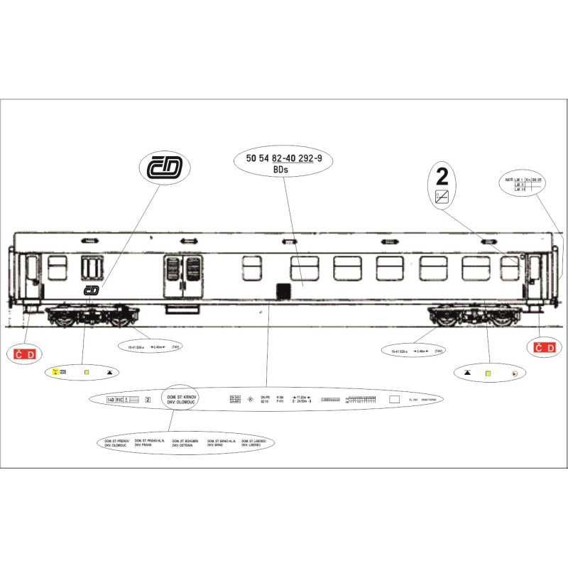 Obtisky na osobní vůz BDs, ČD, V. epocha, TT, Jacek 12OO9005