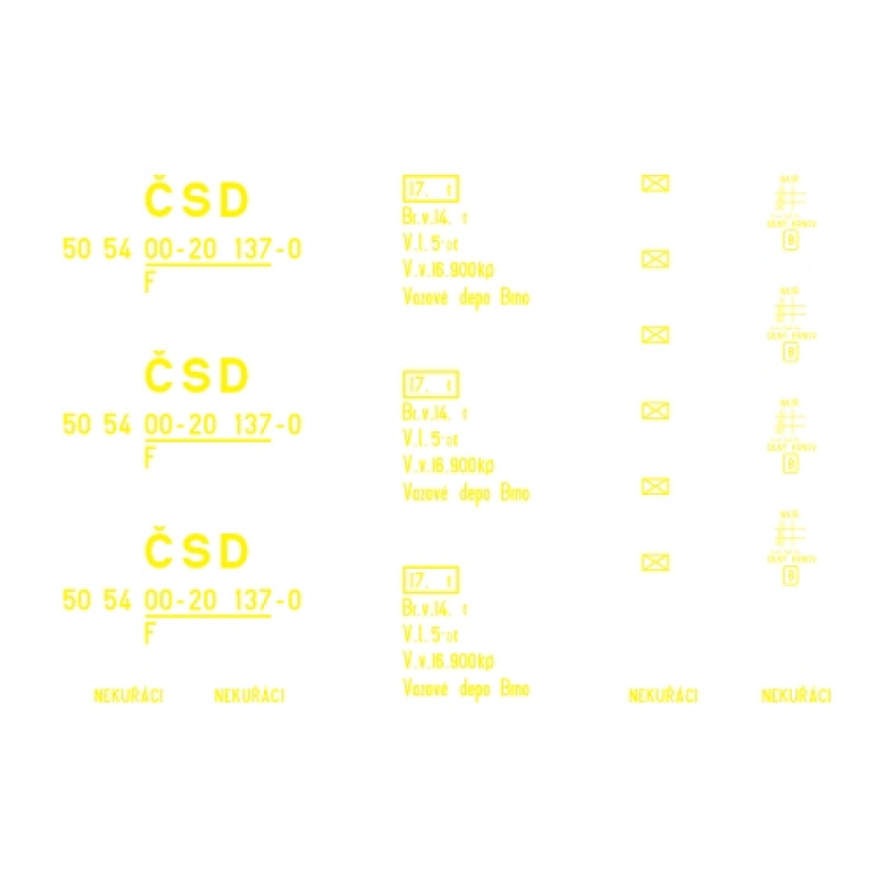 Obtisky na poštovní vůz F ČSD, 8 metrů, se zastřešenou plošinou, Rozenauer P005 Obtisky na poštovní vůz F ČSD, 8 metrů, se zastřešenou plošinou, Rozenauer P005