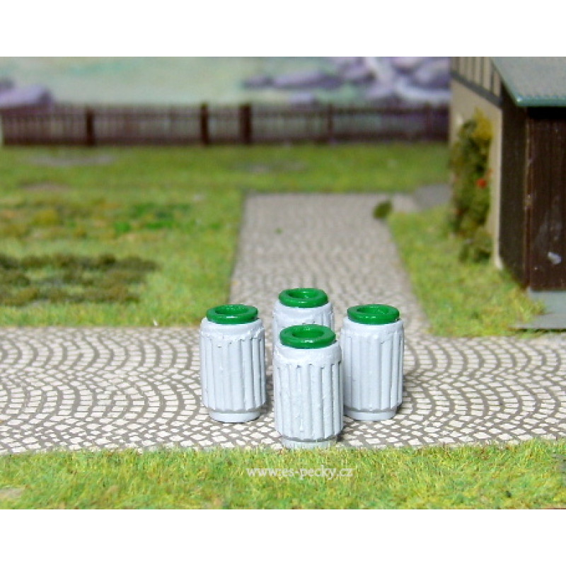 Popelnice kovová, 4 kusy, H0, ES Pečky 29276