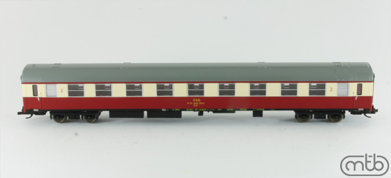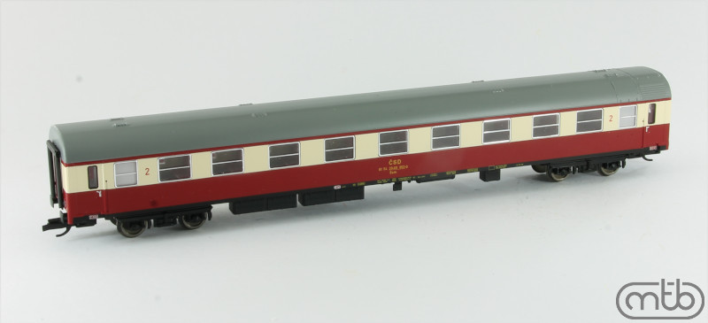 Model přípojného vozu Bam k vozům řad 853 (M296.1/2), samostatný vagon ze soupravy Vindobona, v nátěru ČSD.