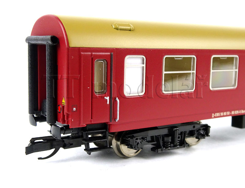 Při zveřejnění modelú Galerie na rok 2022 jsme k vozu, získanému k EBS (Erfurter Bahnservice GmbH) Bom 80 826-6, napsali: „Vůz zůstal dosud v červeném nátěru, jak jsme ho převzali. Byly přizpůsobeny jen popisy v rámečcích. V tomto stavu je často v provozu společně s vozy „městských expresů" EBS". Mezitim získalo toto vozidlo EBS popisy jako vůz MITROPA Deutsche Reichsbahn, v tomto vysoce zajímavém provedení Vám tento vůz Halberstadt nyní prezentujeme jako model Galerie na rok 2024.