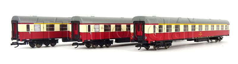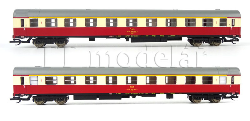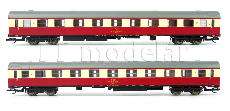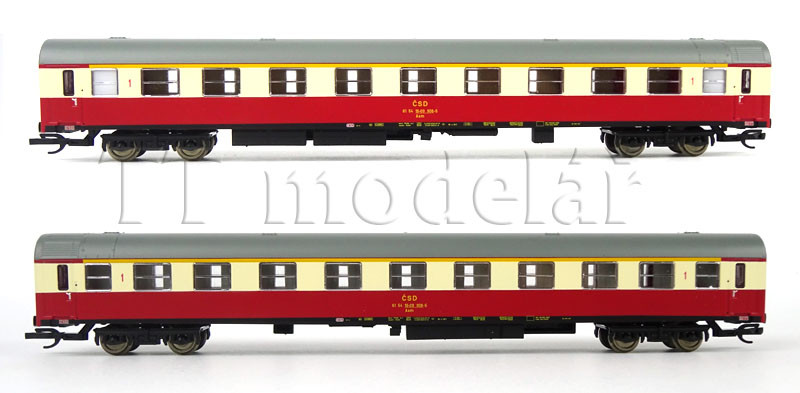 Modely připojných vozu Aam + Bam+ Aam k vozům řad M296.1 v nátěru ČSD.