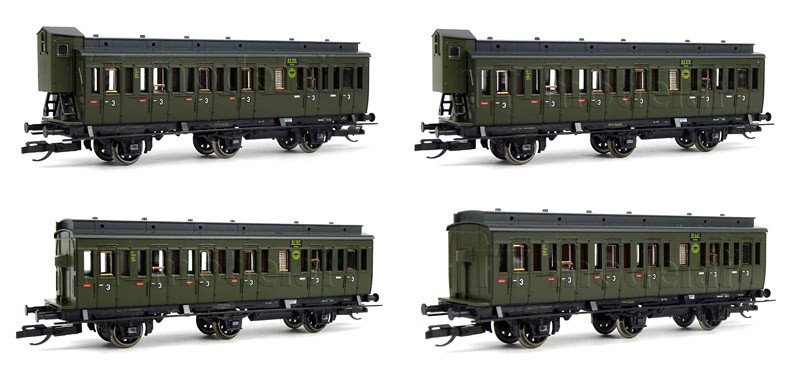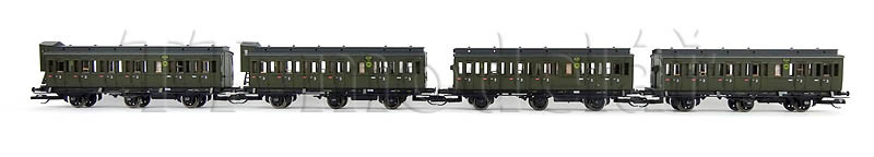 Set čtyř osobních 3osých vozů, DRG, II. epocha, TT, DOPRODEJ, Tillig 01815