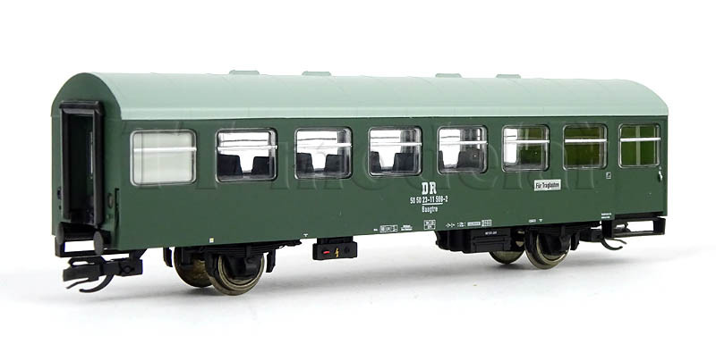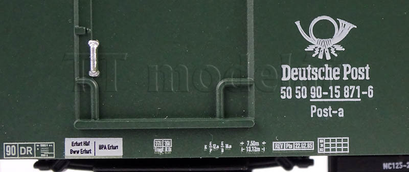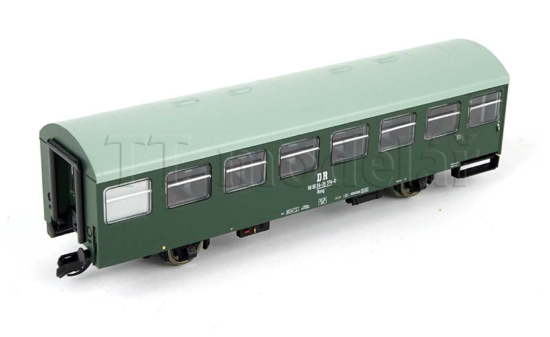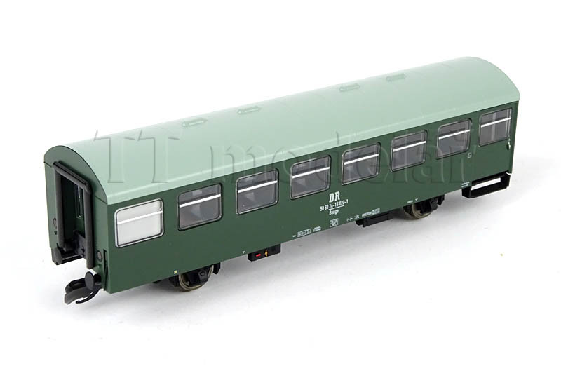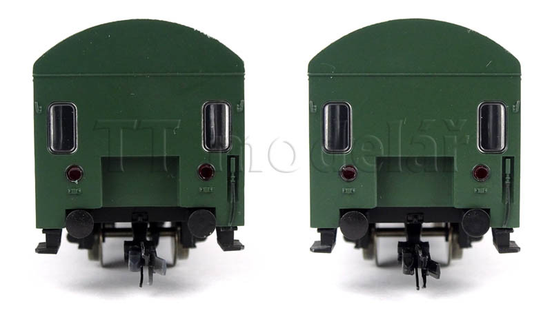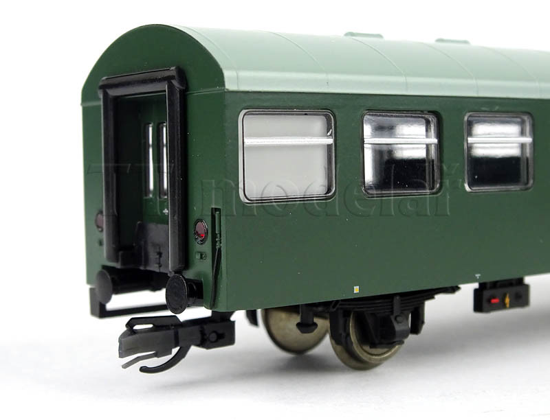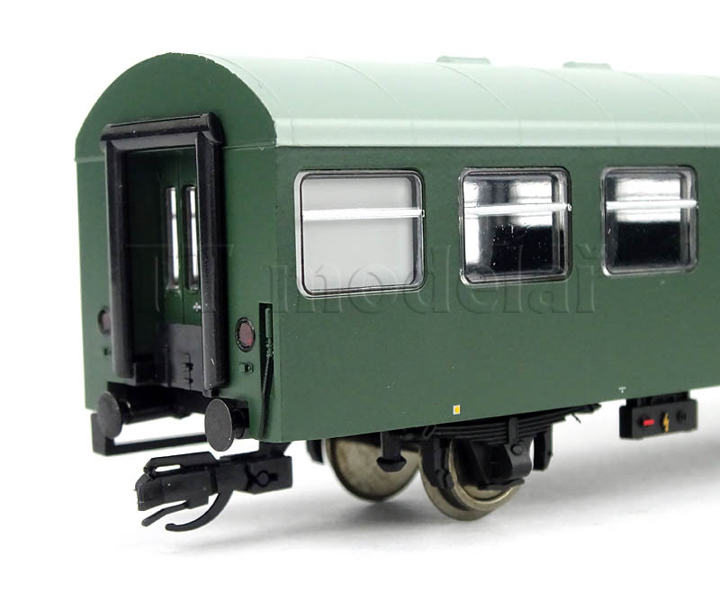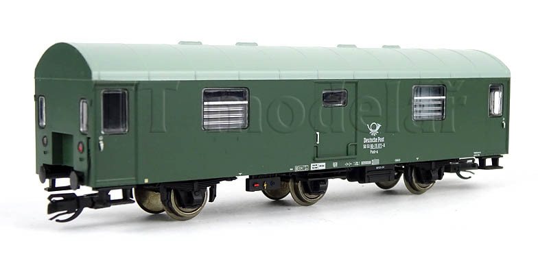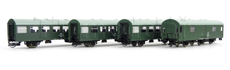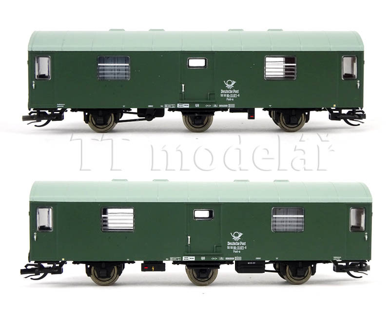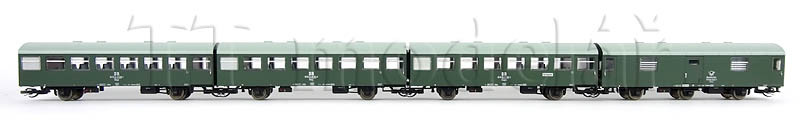 Novinka 2020, nová forma. Obsahuje jeden 3osý poštovní vůz a tři 2osé osobní vozy v tmavě zelené barvě.