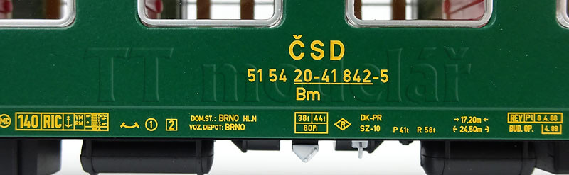 Osobní vůz 2. třídy řady Bm, typ Y, ČSD, IV. epocha, H0, Tillig 74939