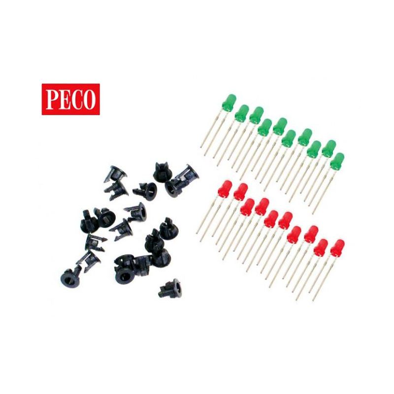 Barevné LED, 10 červených, 10 zelených, 20 objímek, PECO PL-30