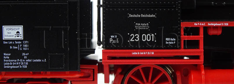 Na konci 30. let naplánovaly tehdejší DRG (Deutsche Reichsbahn Geselschaft) pokračovatele pruské řady P 8 (BR 38). Byla to univerzální lokomotiva pro osobní vlaky řady 23. Byly vyrobeny dva prototypy, ale sériovou výrobu překazila válka. Provedení odpovídá epoše III, konkrétně období 1956 - 1960, kdy byla nasazena u Zkušebního ústavu DR v Halle. Uhelný tendr 2´2T26, usměrňovací plechy Witte, střešní nástavba. Čelní osvětlení teple bílými LED diodami, přepíná se ve směru jízdy. Minimální pojížděný poloměr oblouku je doporučen 310 mm (lze až 267 mm!!), délka stroje s tendrem přes nárazníky činí 191 mm. Na tendru i čele je vybavena kinematikami krátkého spřáhla se šachtami na spřáhla dle NEM 358 a v tendru je připraveno digitální rozhraní dle NEM 651 (6 pinů v řadě), přístupné po sejmutí uhlí.