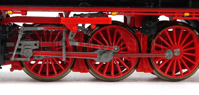 Mezi loko a tendrem je opravdu velmi malá mezera, vpředu i vzadu jsou kinematiky krátkého spřáhla. Heusingerův rozvod je velmi jemně zpracován z pružného plastu. Karoserie má mnoho detailů, je velmi filigránsky zpracovaná. Budka je volná, včetně plastického zpracování skříňového kotle, ovládání rozvodu. Průhled mezi kotlem a rámem, těsné spojení s tendrem. Pětipólový motorek se setrvačníkem, tendr a rám lokomotivy ze zinkové slitiny, 4 poháněná dvojkolí v tendru, 2. a 3. náprava na loko.