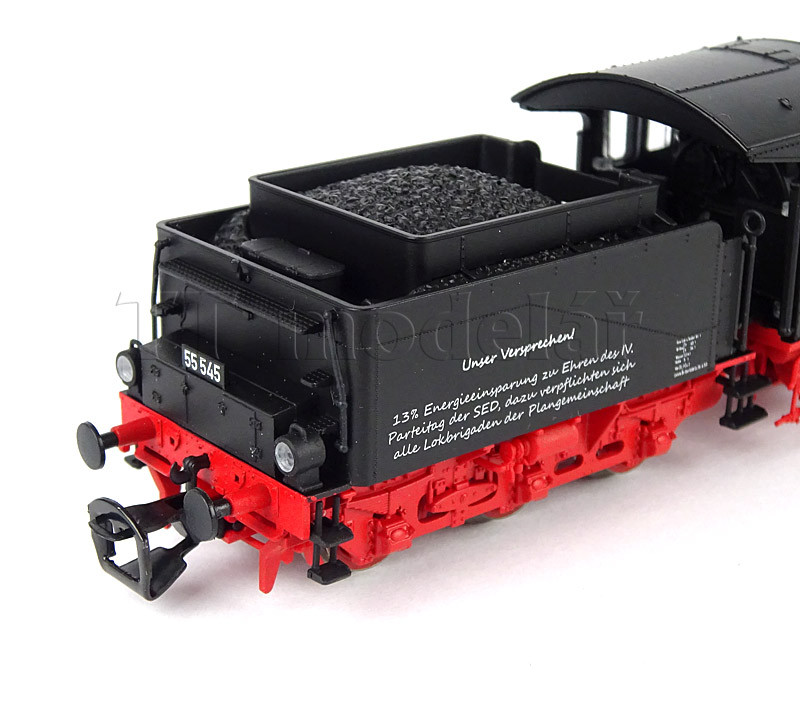Skutečně precizně zpracované detaily, velmi jemně provedené uhlí v tendru, které je i reálně sesypané směrem k místu odběru topičem.. Výborné jízdní vlastnosti.