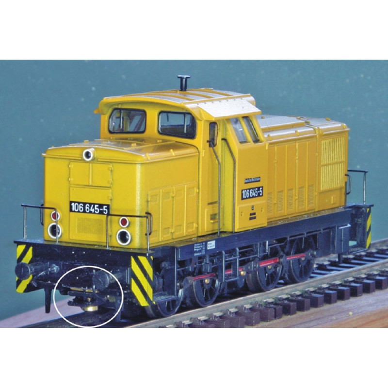 Sada sestává ze dvou samovratných otočných šachet NEM s magnetem (viz P 110), dvou plastových dílů a návodu a je určena pro úpravu uchycení spřáhla u lokomotiv V 60, BR 106 od firmy Tillig (dříve výrobce Jatt).