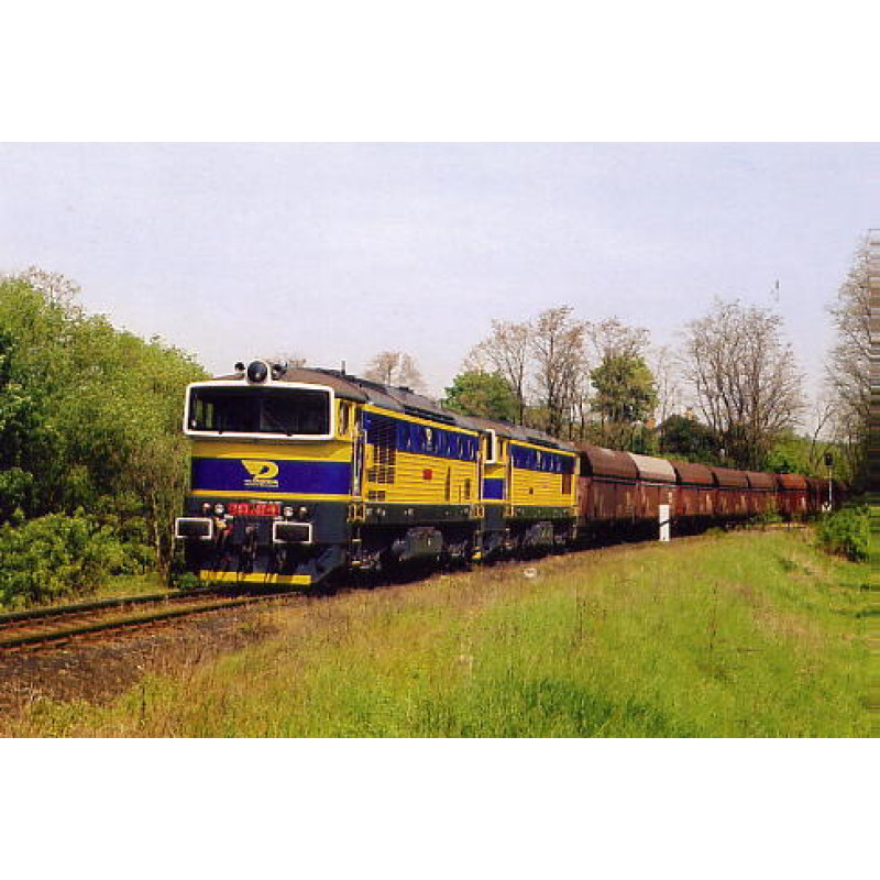 Pohlednice, lokomotivy 753.707 a 708 projíždí Kralupy nad Vltavou - květen 2005, Corona CPV033