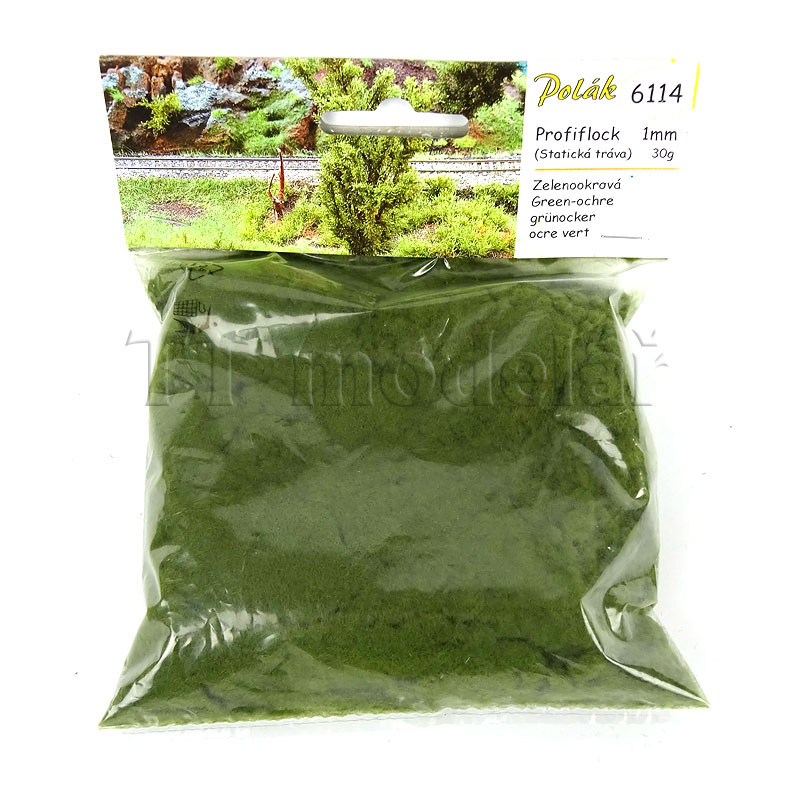 Zelenookrový odstín statické trávy o délce 1 mm. Balení 30 g.