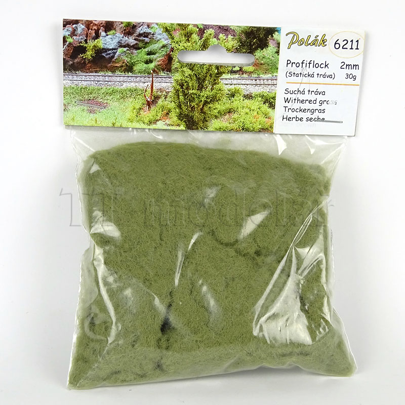 Suchá tráva je odstín statické trávy o délce 2 mm k znázornění proschlé vegetace nebo posekané a usušené trávy trávy. Balení 30 g.