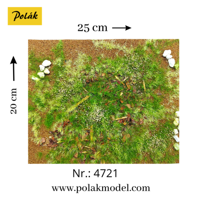 Imitace travnaté louky s různým plevelem či květinami. Rozměr 19,5 × 24,5 cm. Pro přilepení k podkladu doporučujeme lepidlo 5562.