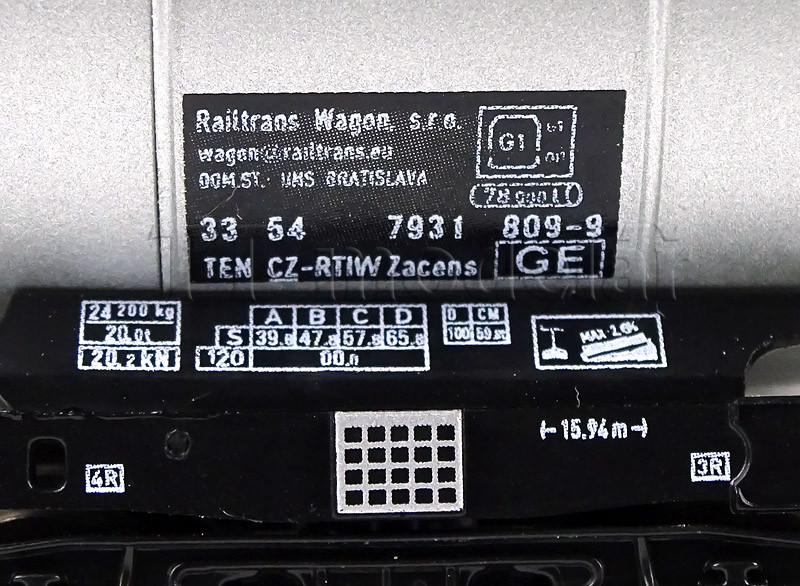 4osý cisternový vůz řady Zacns o objemu 78 m3, vycházející z konstrukce společnosti Legios, následně Nymwag CS.