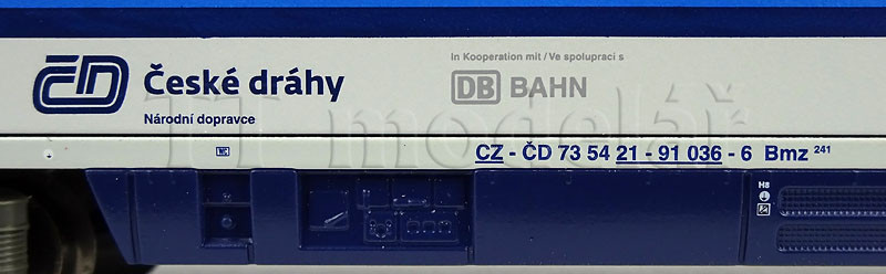 Osobní vůz 2. třídy řady Bmz 241 Českých drah, v barevném provedení Najbrt. Délka přes nárazníky 220 mm, kinematiky krátkého spřáhla se šachtami dle NEM 358, kvalitní dvojkolí, příprava pro montáž osvětlení, vnitřní vybavení.
