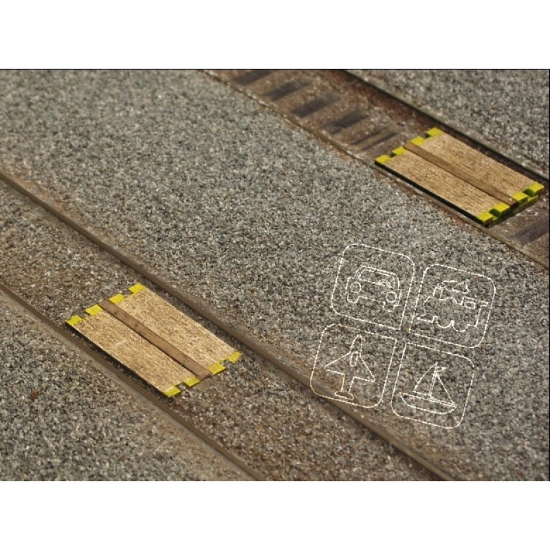 Další z doplňků pro všechna kolejiště. Stavebnice obsahuje 4 komplety kolejových přechodů v nebarveném stavu (kombinace karton/překližka).