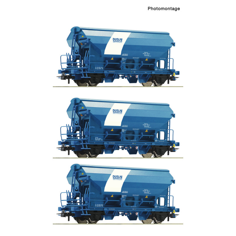 Set tří samovýsypných vozů s odsuvnou střechou řady Tdns, Duslo, VI. epocha, H0, Roco 6600134