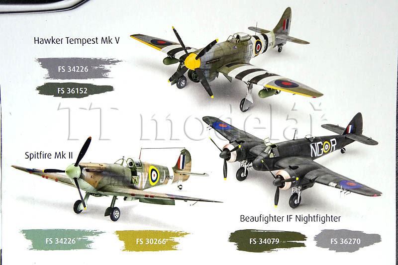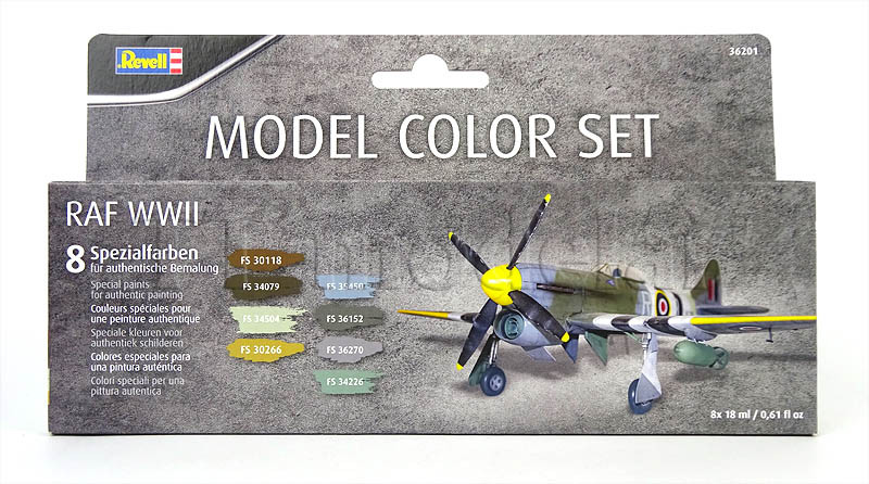 Součástí balení je 8 speciálních barev (každá o objemu 18 ml), které odpovídají letadlům Královského letectva za druhé světové války.