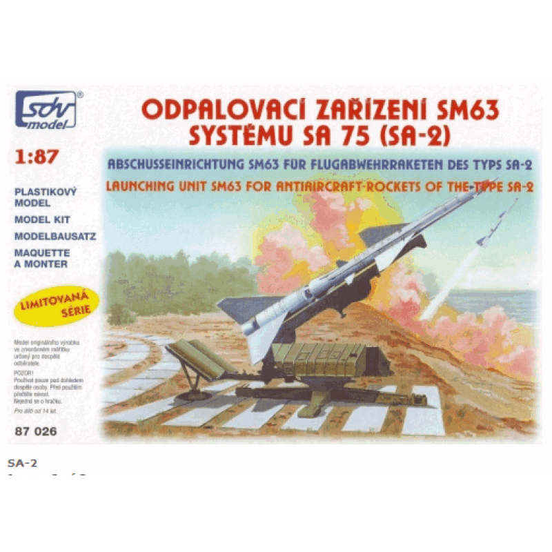 Odpalovací zařízení SM63 systému SA75 (SA-2) včetně podvozku. Stavebnice obsahuje obtisky.
