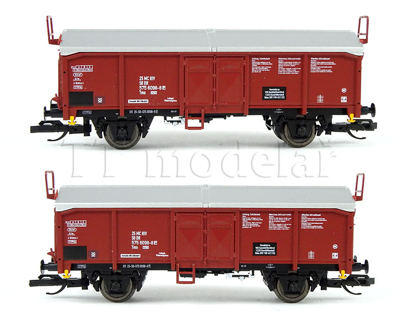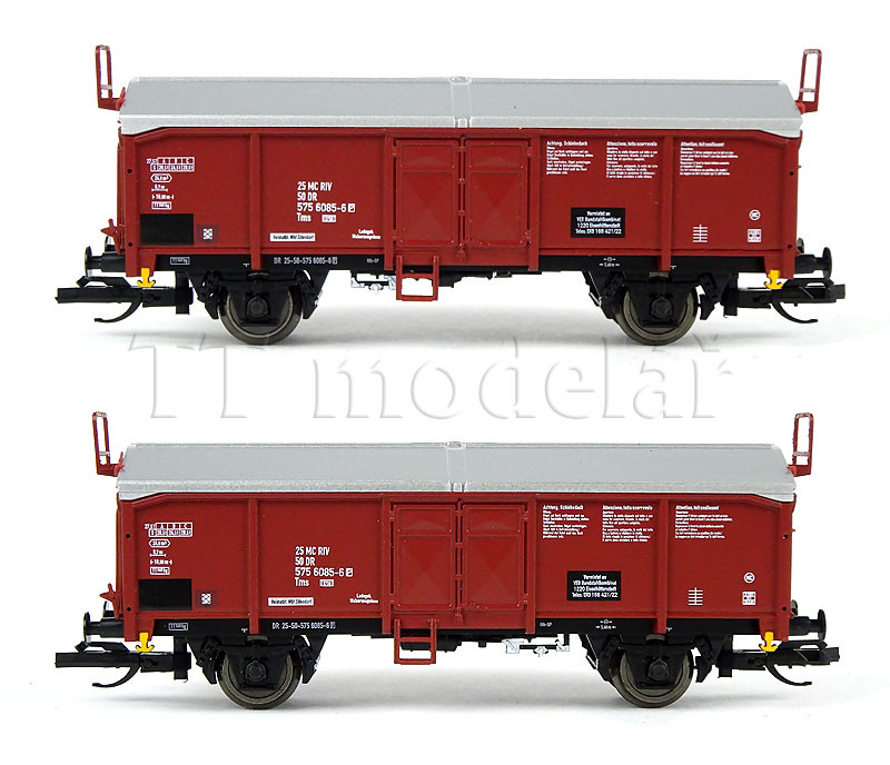Set dvou nákladních vozů Tims 5756 s posuvnou střechou, DR, IV. epocha, TT, Tillig 01033