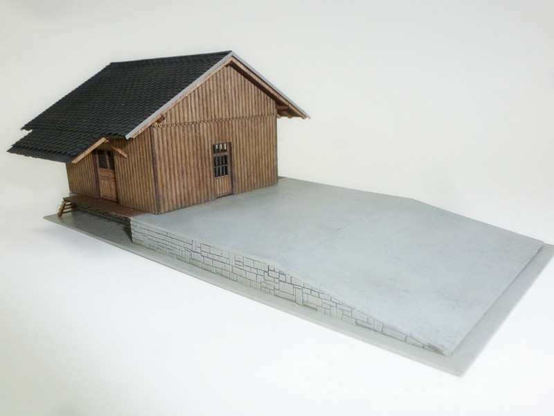 Skladiště o půdorysu 8x8m vhodné i pro nejmenší kolejiště. Postaveno dle typového listu 353/H.