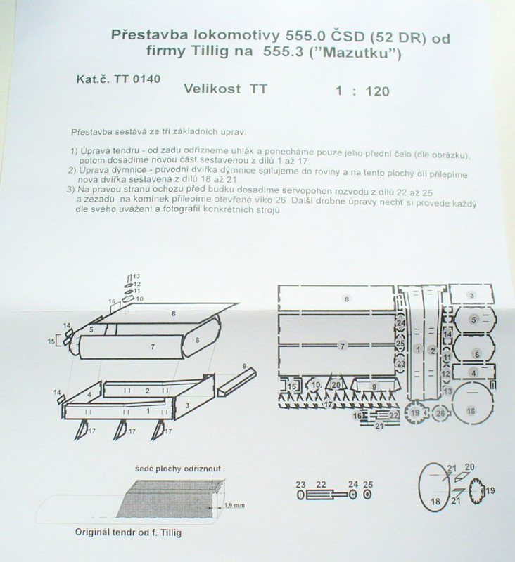 Sada pro úpravu 555.0 či BR 52 na 555.3, což byla úprava těchto lokomotiv pro vytápění mazutem. K tomu bylo nutno upravit tendr jako nádrž na tento těžký topný olej, ohřev pro zajištění jeho tekutosti, do skříňového kotle instalovat hořáky, ve kterých byl spalován. Rovněž dýmniční dvířka měla chrakteristický tvar.
