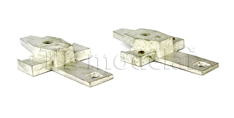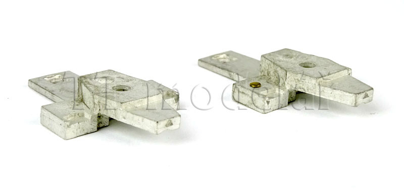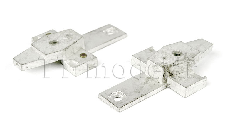 Sada - 2 ks zinkových odlitků kinematiky krátkého spřáhla pro Eilzugwagen Tillig, které trpí tím, že po delší době se začně rozpadat vlivem vnitřní koroze jejich zinková slitina.